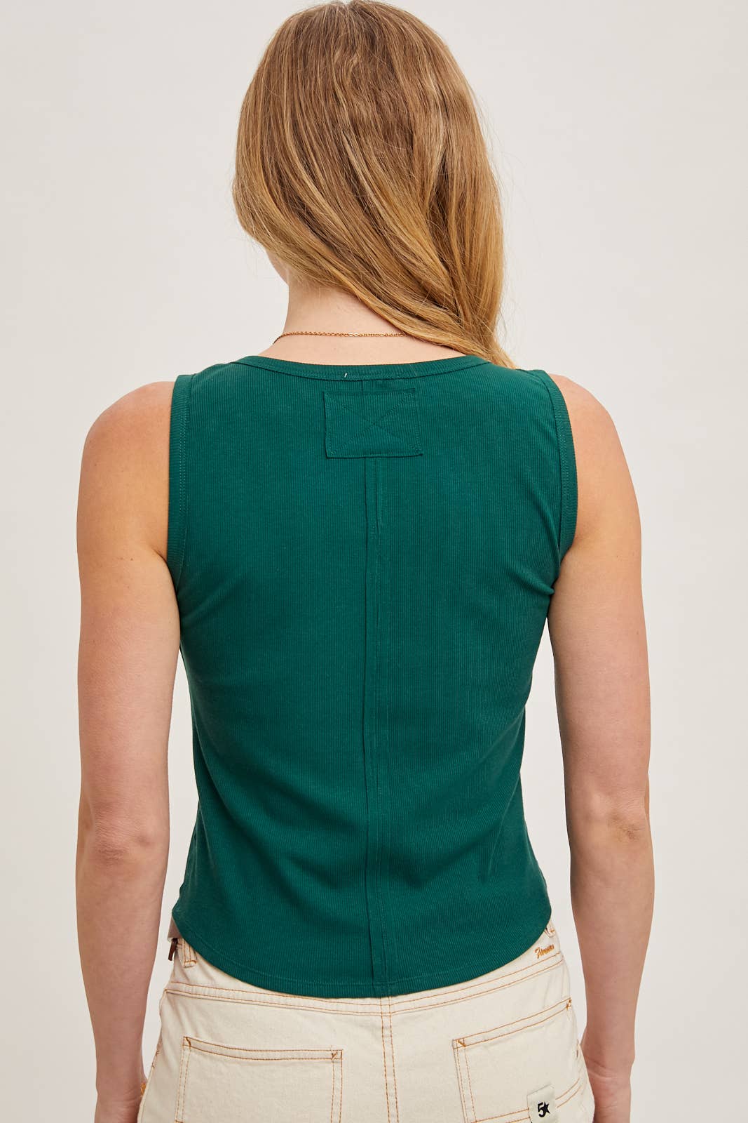 A versatile scoop neck knit tank top designed for both comfort and style. This essential wardrobe piece features a classic scoop neckline and a slim-fit silhouette, perfect for layering or wearing on its own. The soft knit fabric ensures a cozy feel, making it an ideal choice for casual days or dressed-up pairings.