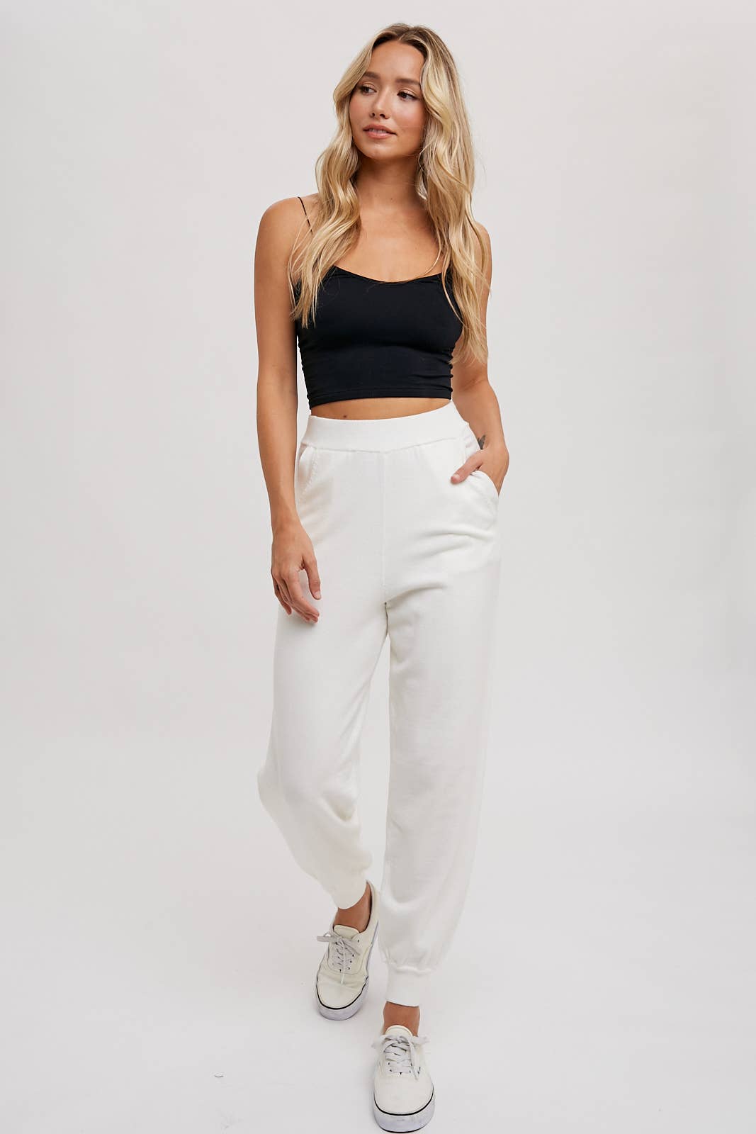 Introducing chic sweater jogger pants that seamlessly blend comfort and style. These pants feature a cozy sweater knit texture that adds warmth and charm to your ensemble. The pleated front detail brings a touch of sophistication to the design, elevating the overall look. With a jogger-style silhouette, these pants provide both a relaxed fit and a fashion-forward edge. The combination of comfort and style makes them perfect for various occasions, whether you're lounging or heading out. Elevate your wardrobe with these sweater jogger pants, a versatile addition that effortlessly combines coziness and a trendy aesthetic.