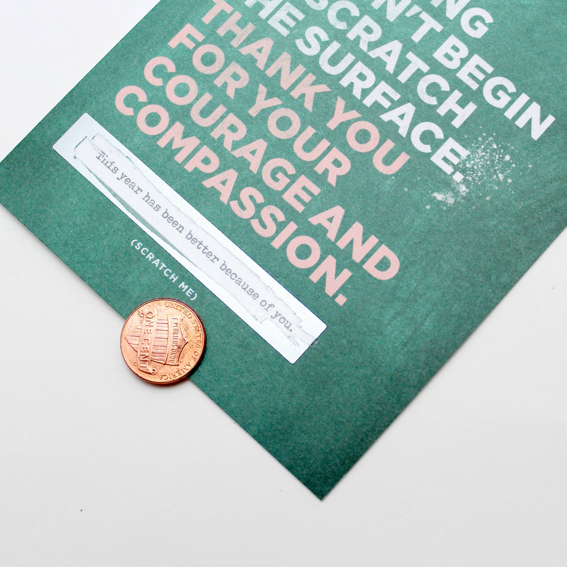 Our Random Scratch of Kindness cards are like a lottery ticket, only better! Scratching with a coin will reveal a surprise message.