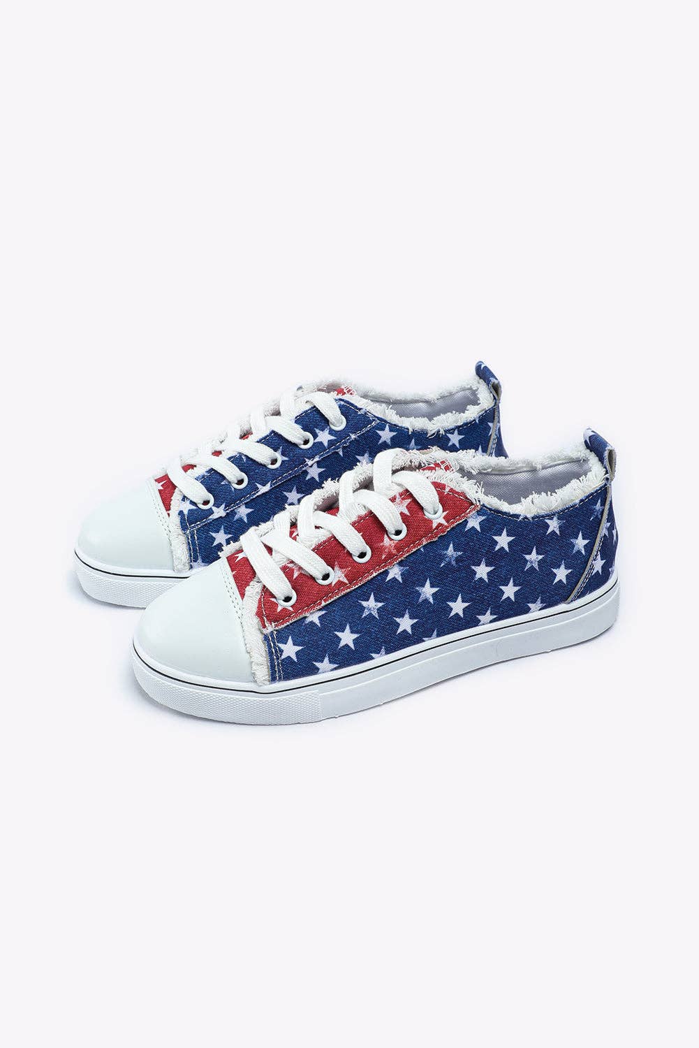 Multicolor American Flag Stars Printed Frayed Detail Lace-up Shoes