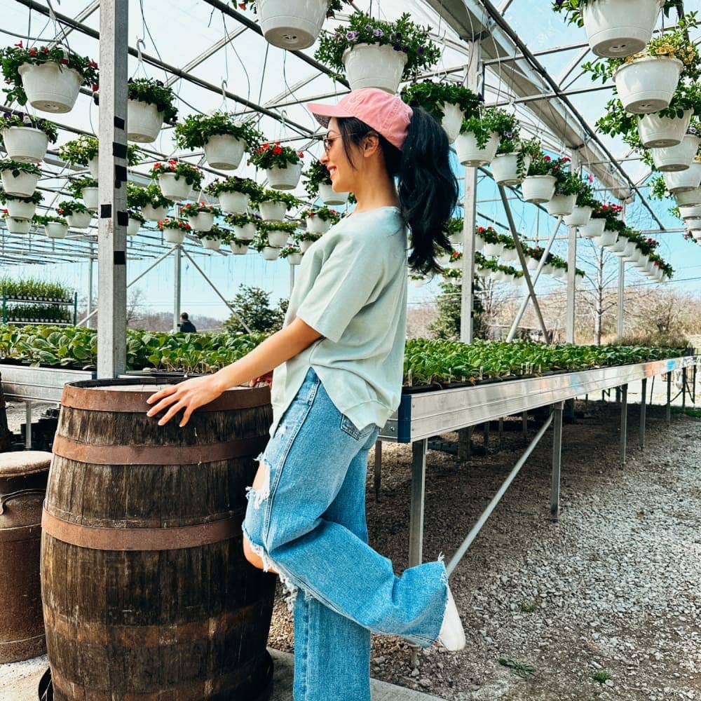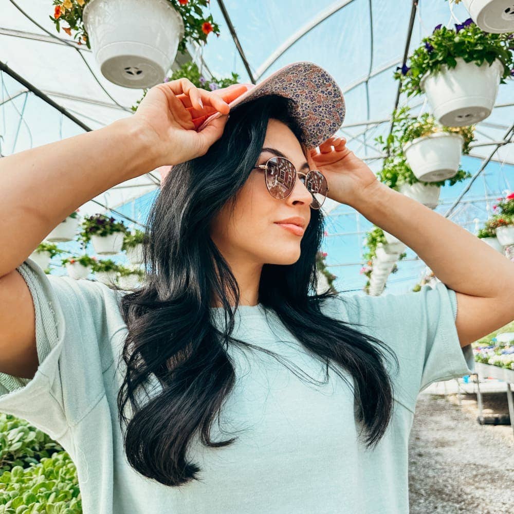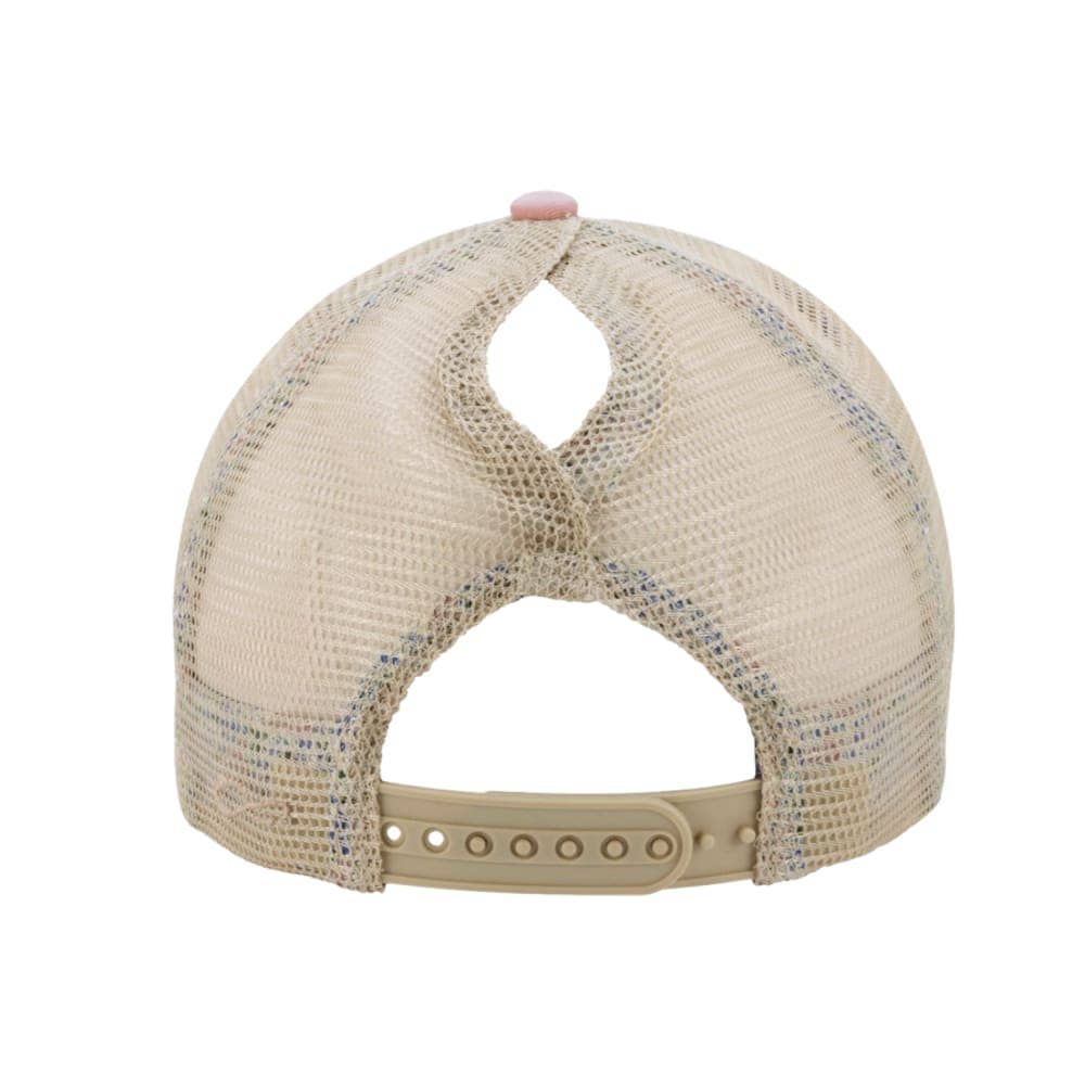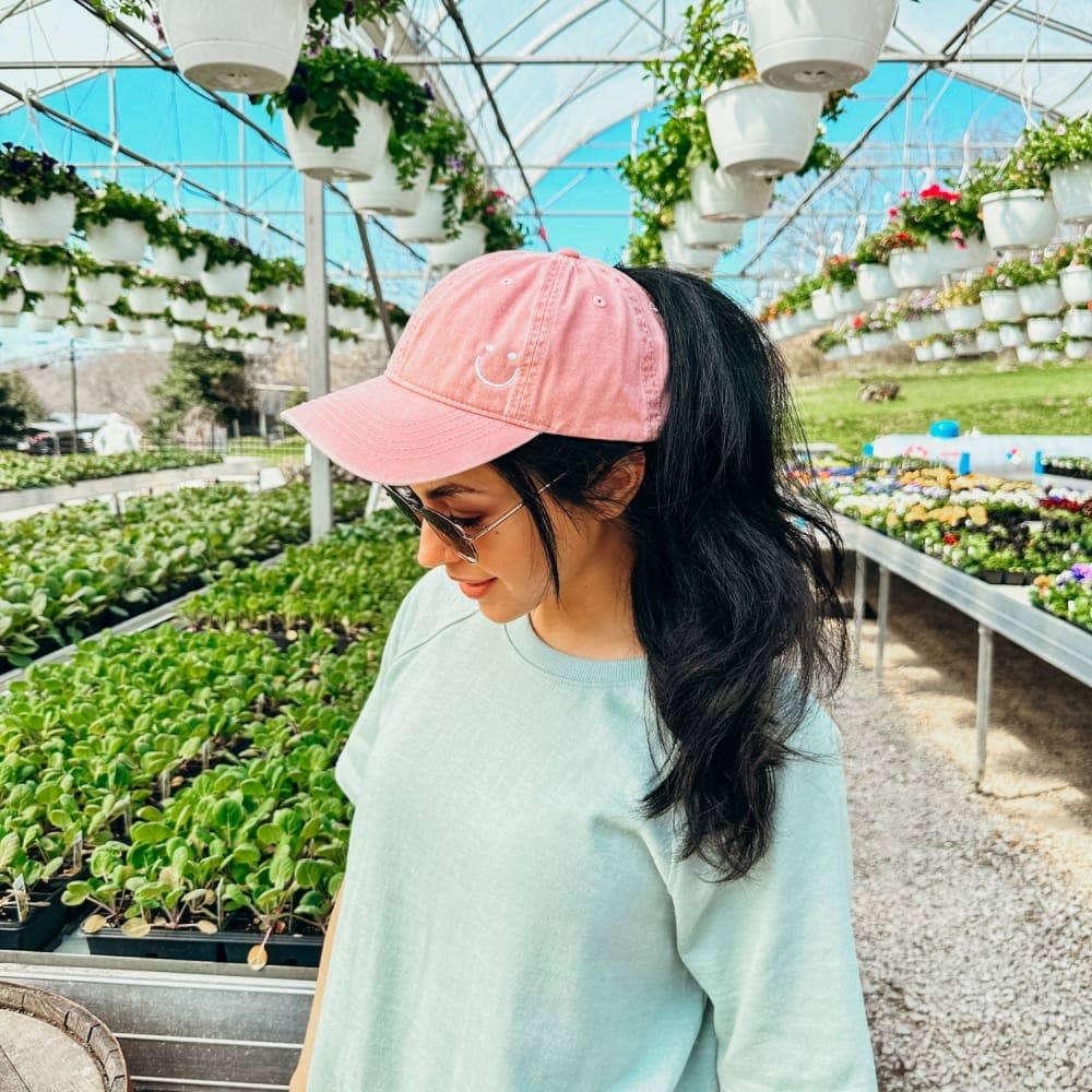 Pink Floral Smiley Ponytail Hat