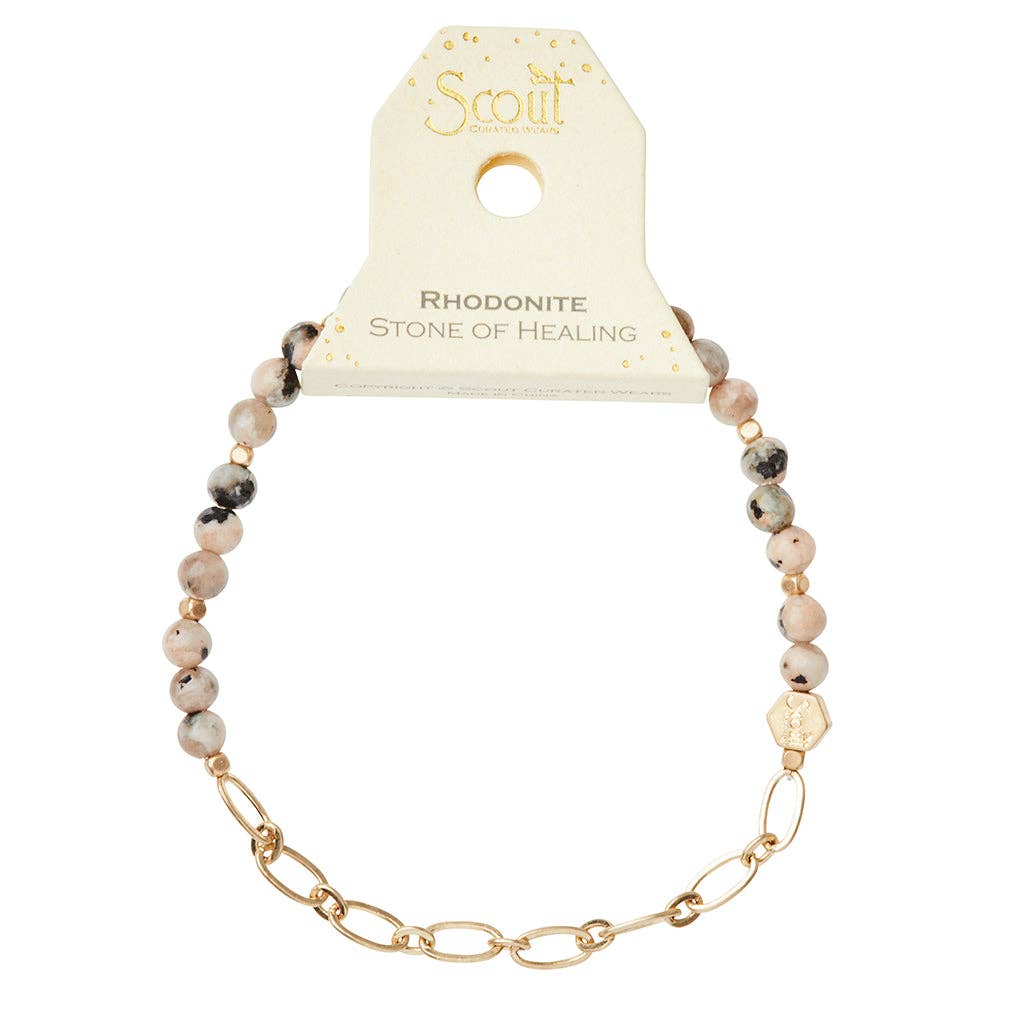Scout Curated Wears - Mini Stone w/Chain Stacking Bracelet - Rhodonite/Gold