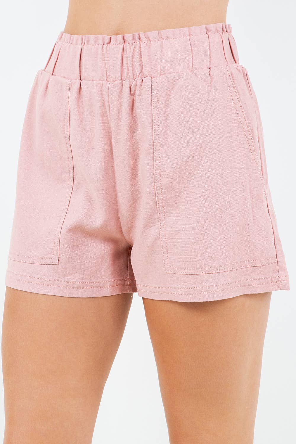These cute and comfy linen shorts are a summer staple in our wardrobes. Loose-fit shorts in an airy, woven linen and Linen blend. High waist, elastic waistband, and front patched pockets.